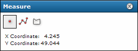 El cuadro de diálogo Medir también permite buscar las coordenadas X, Y de un punto del mapa en el que hace clic.